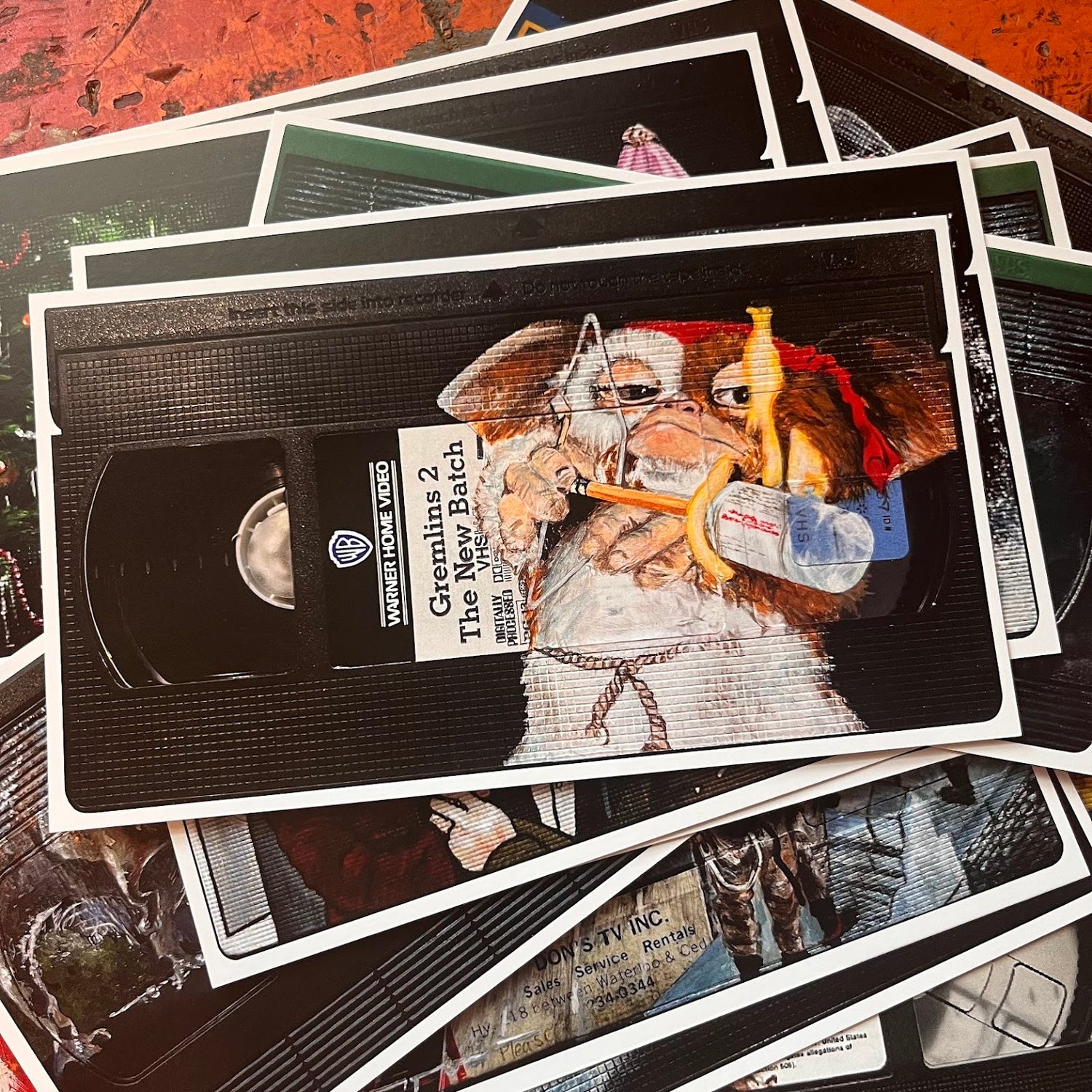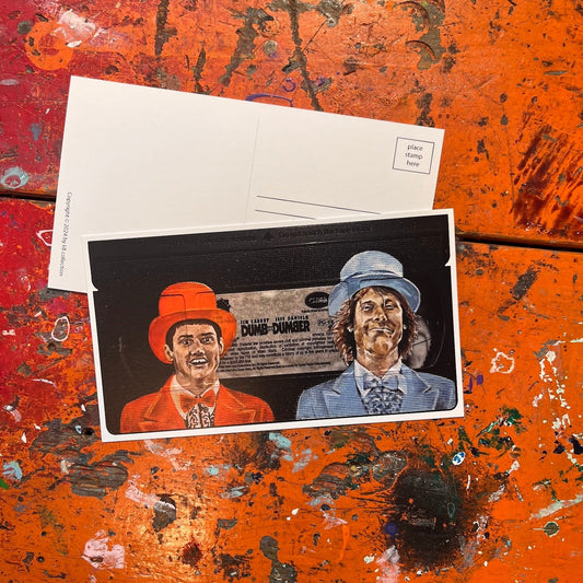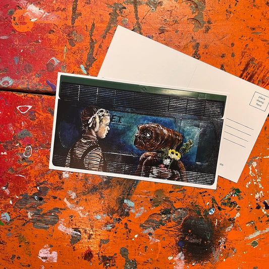 each set has a postcard print of the following painted films: a christmas story, clueless, dumb and dumber, edward scissorhands, e.t. sibling set of three (michael, elliot and gertie), fight club, forrest gump, ghostbusters, gremlins and gremlins 2, home alone, it, and lastly jurassic park and the jurassic park red edition.